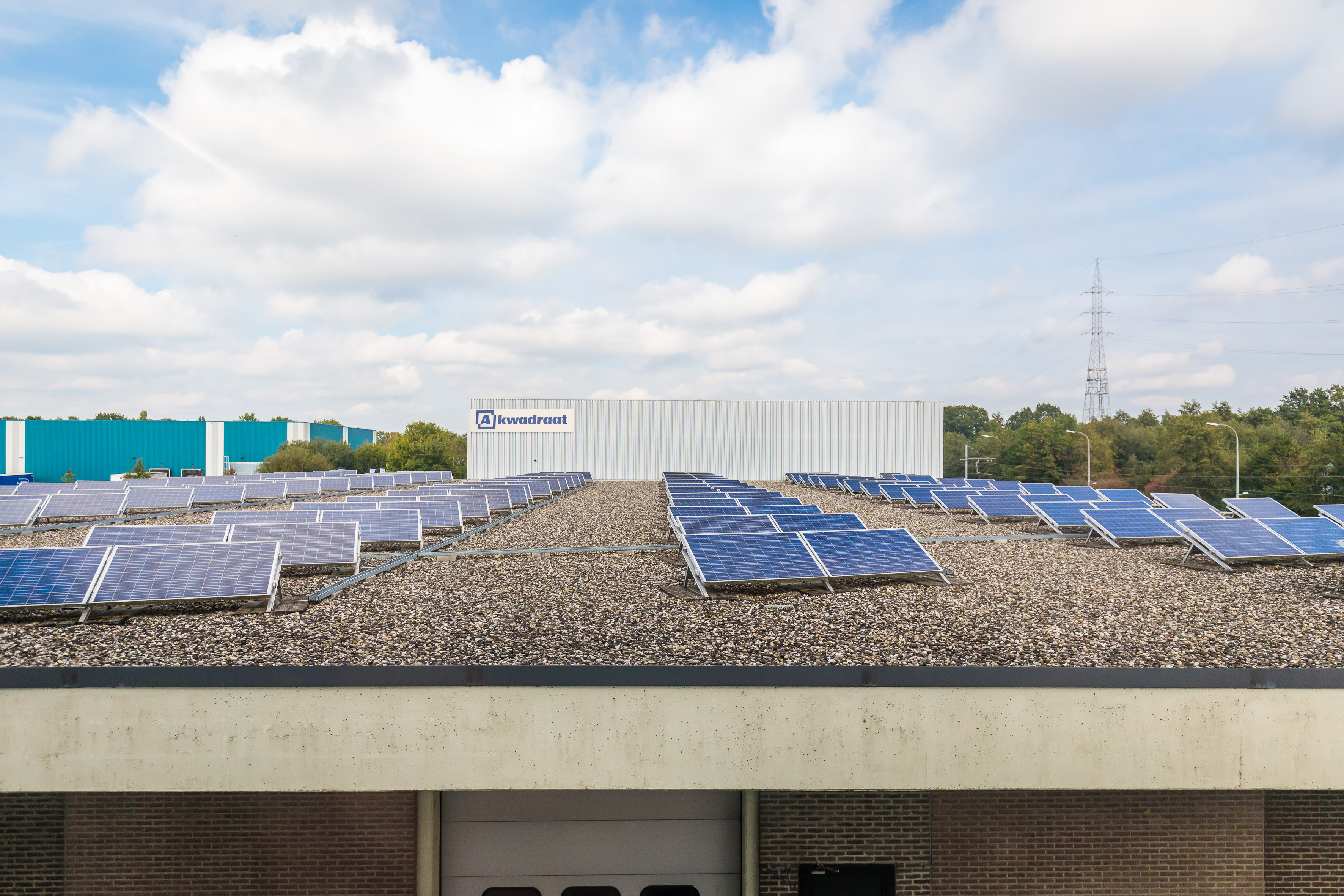 In 2017 werden zonnepanelen geplaatst op A-kwadraat 1 en een tijdje later ook op A-kwadraat 2 en 3. Vandaag produceren we bijna 20% van ons totale verbruik zelf. De resterende elektriciteit kopen we aan en bestaat voor 100% uit groene energie.